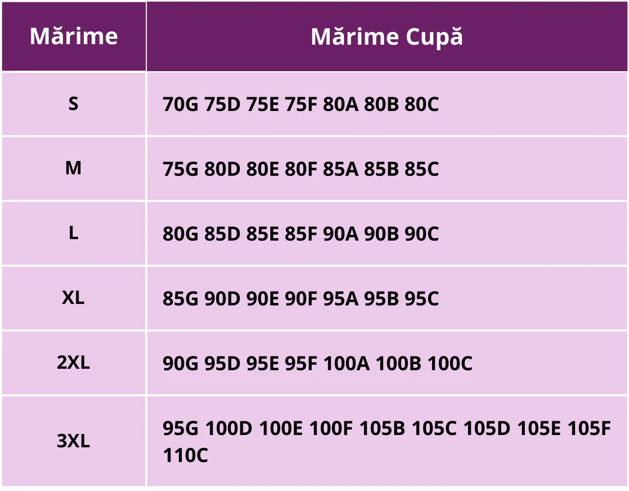 | 3XL | 95G 100D 100E 100F 105B 105C 105D 105E 105F 110C |